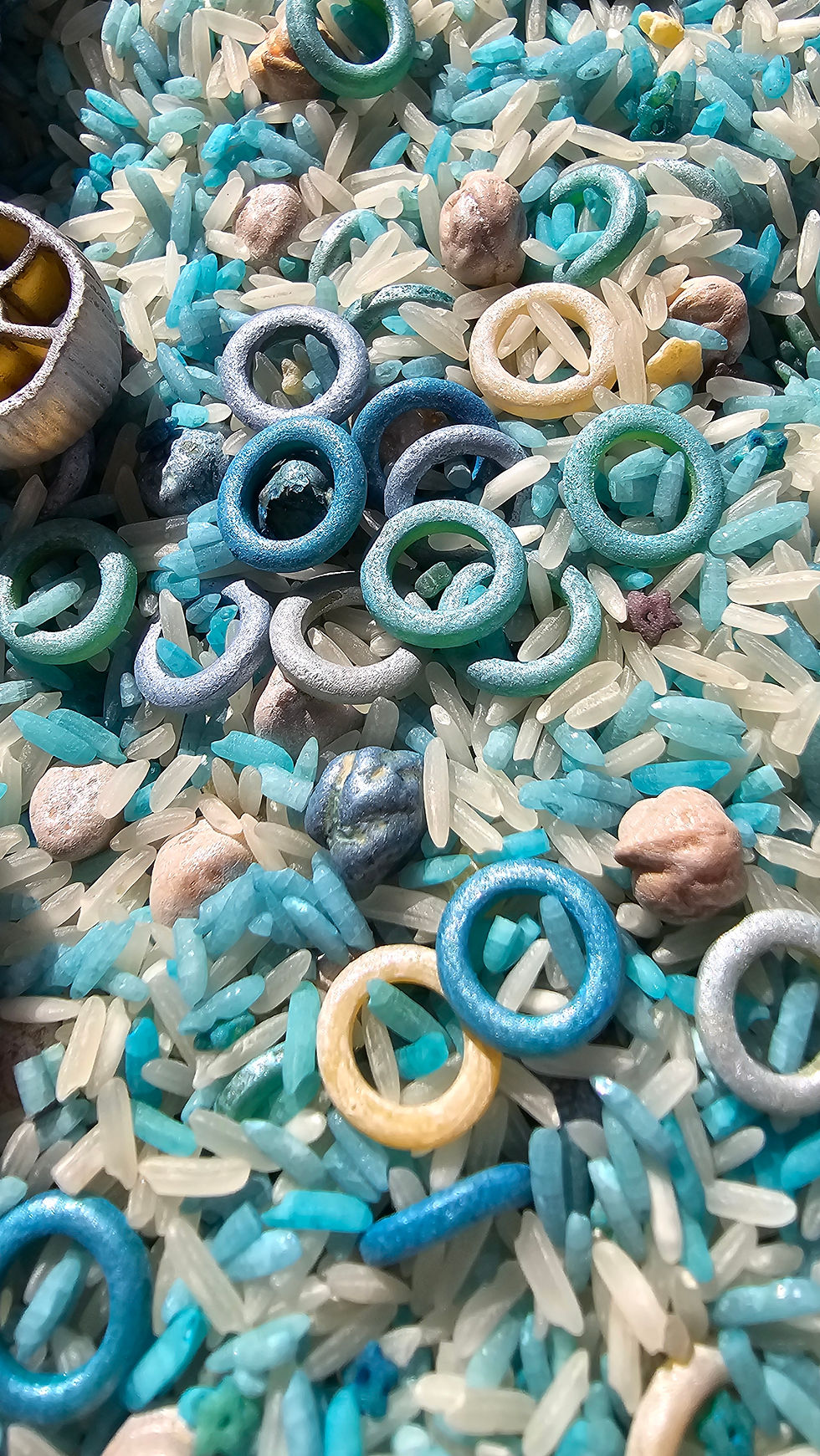 A whimsical mix of colours and textures — combining rice, chickpeas, and more into vibrant sensory blends that spark imagination and delight.
